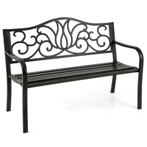 50 Inches Outdoor Garden Bench with Floral Design Backrest and Slatted Seat-Black 50 Inches Outdoor Garden Bench with Floral Design Backrest and Slatted Seat-Black 50 Inches Outdoor Garden Bench with Floral Design Backrest and Slatted Seat-Black 50 Inches Outdoor Garden Bench with Floral Design Backrest and Slatted Seat-Black