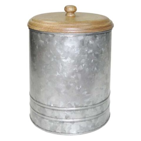 Galvanized Metal Canister With Wood Lid, Large, Metallic, Wood/metal