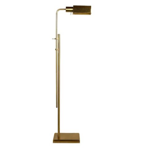 Antiq Brass Metal Adjust Task Floor Lamp With Metal Shade, 60", Metallic