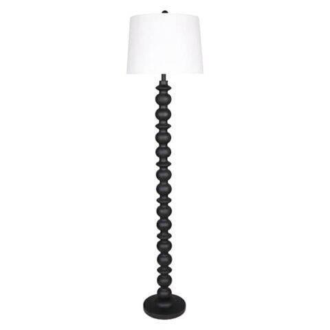 Black Resin Turned Floor Lamp With Shade, 69"