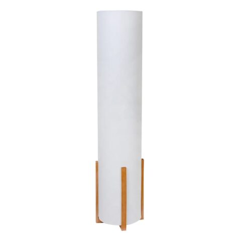 Off White Shade Uplight W Brown Wood Trim, 43", Fabric