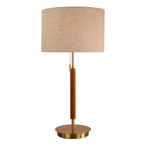Brown Wood & Metal Medium Lamp With Shade, 28", Metallic