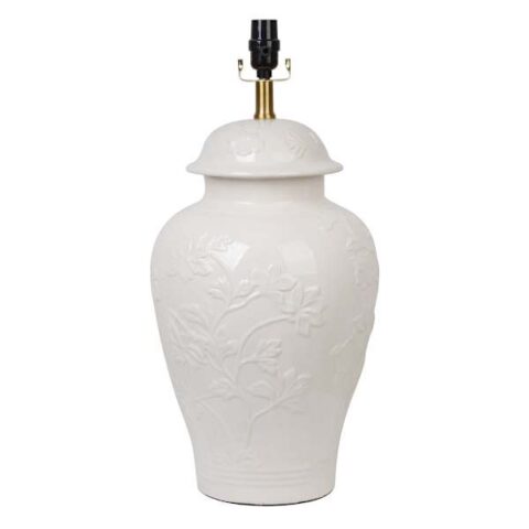 Off-White Ceramic Floral Emboss Medium Table Lamp Base, 20"