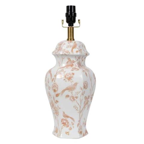 White Ceramic Neutral Chinoiserie Print Medium Table Lamp Base, 18"