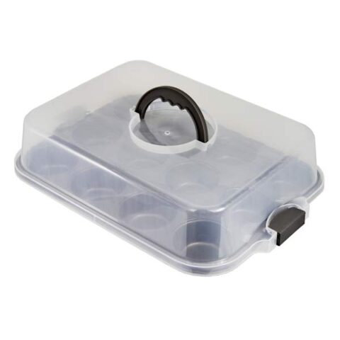 12-Cup Covered Muffin Pan, Grey, Metal